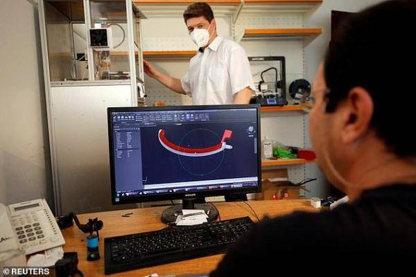 研发人员正在看显示口罩电脑图像的屏幕。(图源:路透社)