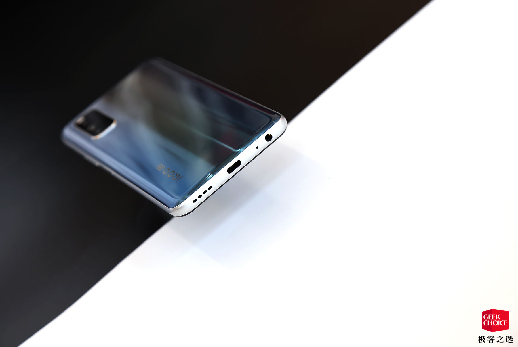 实际颜色效果上,星河银版本后盖上半部分为银色下半部分为淡淡的蓝色,同时加入了很多特别的纹理。另外细节处理方面,这次 iQOO 将其后盖做成了类似于磨砂玻璃的效果,整体视觉效果很棒。当然,哪个版本更加好看就是一件见仁见智的事情了,大家根据自己的喜好去选择就好。
