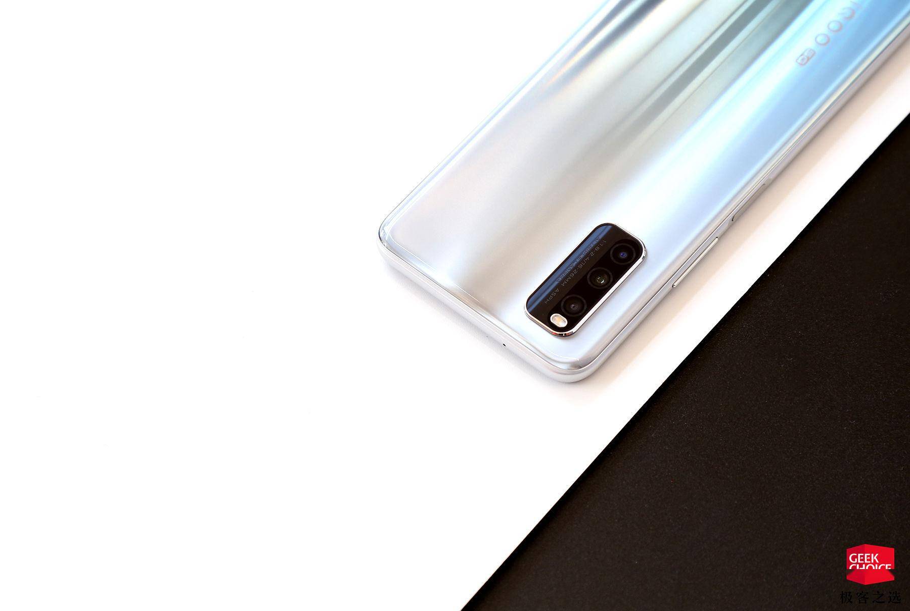 iQOO Z1 一共提供了三种机身配色,除了我们手里拿到的星河银版本,还有太空蓝和幻彩流星可选,后置相机则采用了今年比较常见的矩阵设计。