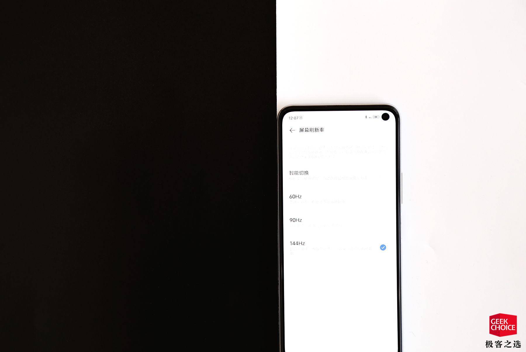 前边游戏测试部分我们提到了 iQOO Z1 支持 144Hz 屏幕刷新率,这次它同样提供了四种可选项,除了智能切换模式,你也可以根据自己的实际使用需要手动选择 60Hz、90Hz 或者 144Hz 模式。若非玩 144Hz 游戏,建议调至智能切换或者 90Hz,毕竟高刷新率对于续航的影响多少是存在的。