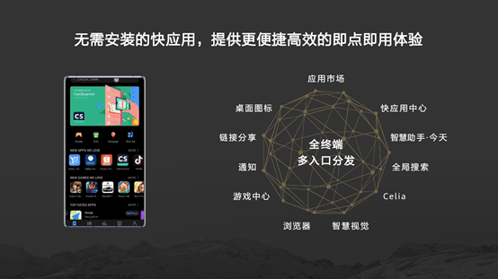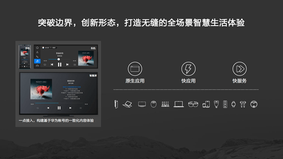 面向全场景智慧未来,华为基于独特的“芯-端-云”协同能力持续创新高品质的全场景一致体验,以“原生应用+快应用+快服务”的全场景数字服务布局打造5G时代全场景智慧生活,基于华为帐号实现高品质应用、内容和服务在全场景终端设备中的无缝流转,带来更智慧、便捷的数字生活体验。