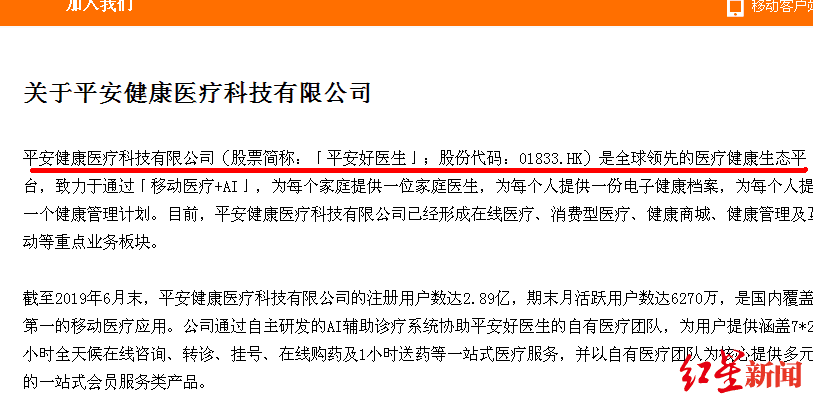 网站上的公司股票名称,仍在使用“平安好医生”
