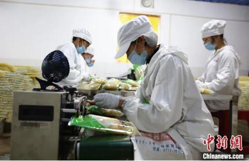 工人正在包装米粉。中新社记者 朱柳融 摄