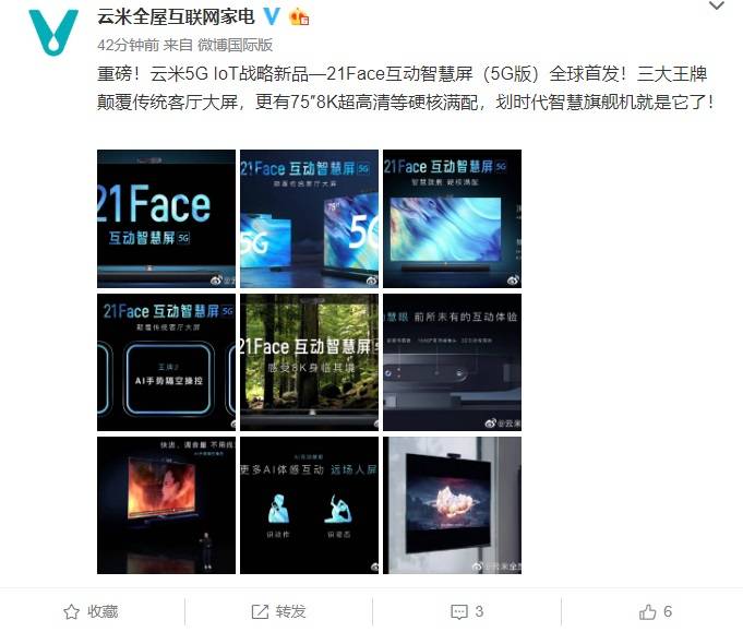 原标题:云米发布 21Face 互动智慧屏:8K超高清,支持5G