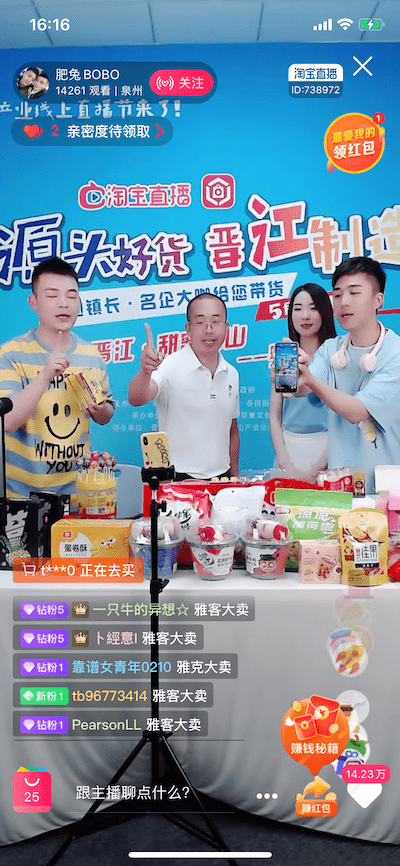 5月18日这场晋江首届线上直播节,东石镇长李德铭、内坑镇长林灿煌、晋江开发区书记谢永彬等一众当地官员为源头产品带货,其中晋江英林女镇长陈东聆带货能力“最强“!3小时直播单场观看人数超过30万,劲霸男装、柒牌的3折好货在直播间买爆。还有361度的球鞋、亲亲的果冻、贵人鸟的运动服、九牧王的男装……5月18日全天,“源头制造、晋江制造”的产业线上直播节在淘宝直播24小时不停。