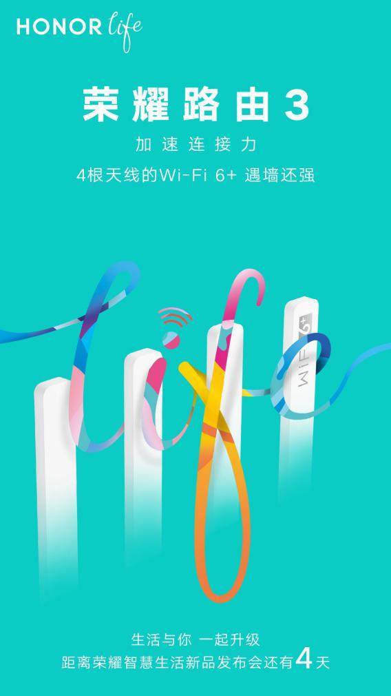 此前,在5月14日,荣耀智慧生活便提前发布了这款荣耀首款Wi-Fi6+路由——荣耀路由3的上市预告。这款荣耀路由3畅快体验在上一代的基础上做了升级。从官宣海报来看,荣耀路由3一共有4根天线。而且值得注意的是,这款荣耀路由3支持Wi-Fi6+。荣耀路由3的天线上,可以清楚地看到WIFi6+的logo,让用户一眼就能看到产品特性,感受不一样的智能连接生活的魅力。
