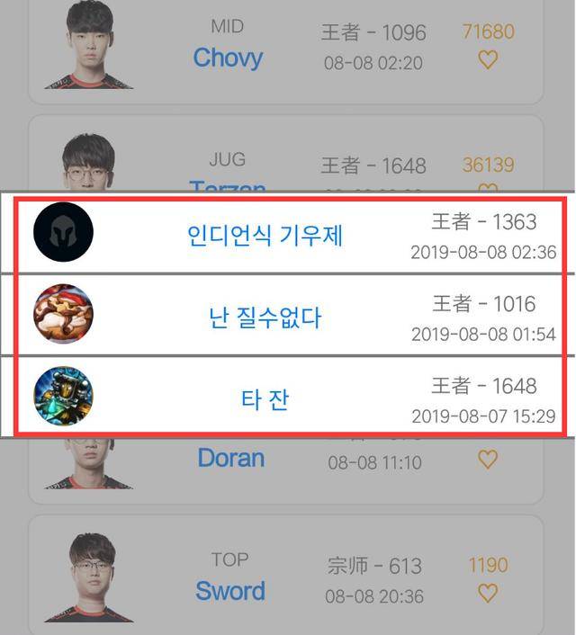 而最近,Tarzan又再次重回了韩服第一的位置,虽然中间掉下来了一段时间,但是最近又打了上去,而Tarzan一共有三个韩服账号,大号目前是王者1600多点,位居韩服第一,小号目前是王者1300多点,位居韩服第七,其中的一个小号也打到了王者1000多点,基本上是韩服王者段位中,没有哪个选手能够超越他了,三个账号全部打上王者1000多点,这不单单只是时间的问题,更多的是个人实力,而最近这个人,在韩服的战绩更是震惊了很多的玩家,这个战绩太恐怖了!