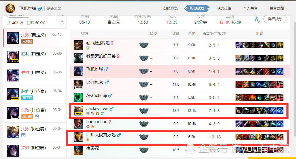 对于TES战队进行了上单和辅助的试训消息,相信大家也都从Knight的口中得到了答案,这是在转会期中第一个“爆料”自家战队引入新人的选手,“透风”能力十足,有了Knight的提醒,加上峡谷之巅中,每个选手的ID也都很直白的在直播间中出现,所以战绩也不难查到,让人欣喜的是,TES战队试训的辅助表现尚好!