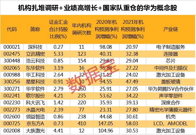 原标题:证金汇金重仓+业绩高增长的华为概念股,仅13只!机构盯上这5股