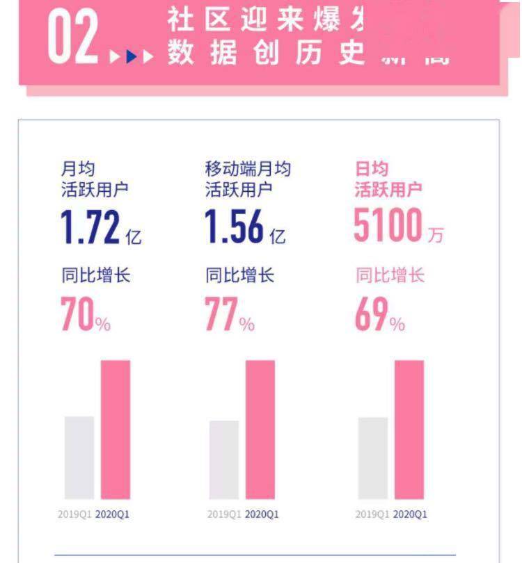数据显示,2020年一季度,B站月活用户同比增长70%达1.72亿;日活用户突破5000万。截至3月底,B站大会员数量达1090万。据了解,B站新用户的平均年龄是20岁左右,新用户来源超50%来自三线以及三线以下城市。