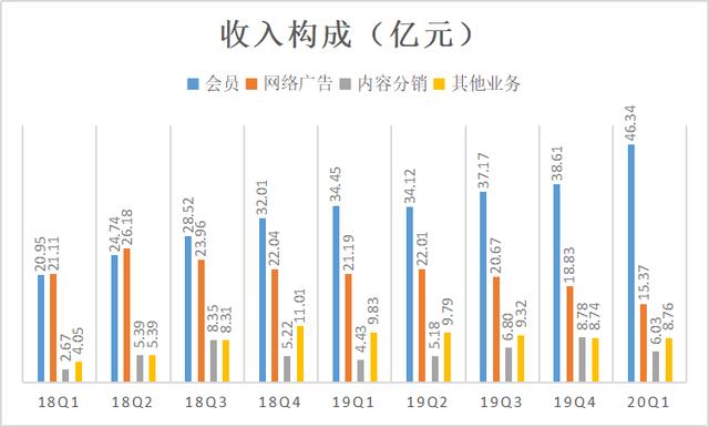 第一季度,会员服务收入为46亿元,较去年同期增长35%。强劲增长得益于内容供给,以及新冠肺炎疫情期间用户居家隔离时,激增的数字娱乐内容需求。