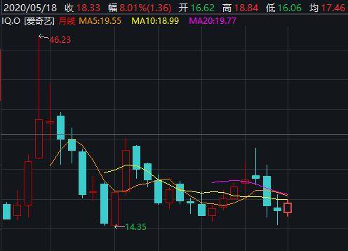 周一爱奇艺涨2.12%,收于18.33美元;周二收盘,爱奇艺再度破发,收于17.66美元,市值为130亿美元,约920亿元人民币。爱奇艺上市后也有高光时刻,股价一度涨至超过46美元。现与之相比,不到18美元股价,跌幅已经有六成。
