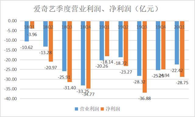 2017年-2019年,爱奇艺分别亏损37亿,91亿和103亿,加上一季度亏损近29亿,13个季度共计亏损总额为263亿元,相当于每个季度亏掉20亿,非常惊人。如果从上市开始计算,则累计亏损229亿元。