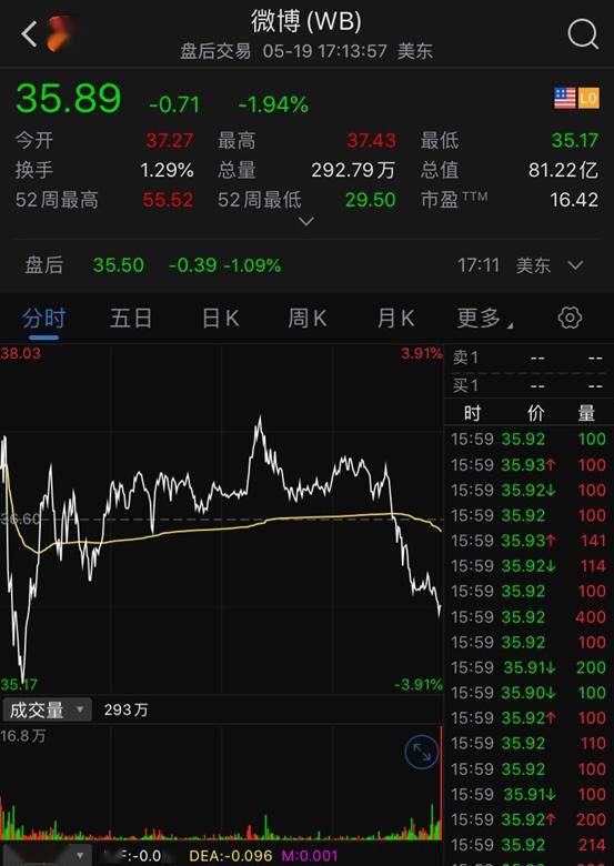 微博第一季度营收达到3.234亿美元,同比下降19%,但略高于3.113亿美元的市场预期;净利润为5210万美元,远高于去年同期的1.504亿美元。财报还显示,截至今年3月底 ,微博月活跃用户达5.5亿,日活跃用户达2.41亿,与去年同期相比分别增长8500万和3800万,均为单季净增长历史新高。但市场对微博的业绩表现并不满意,微博股价昨夜收跌1.94%。