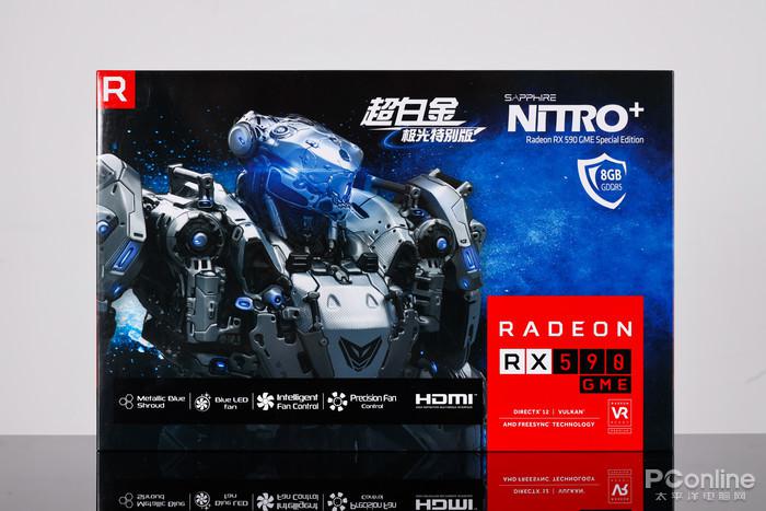 那么让我们仔细欣赏下这张蓝宝石RX590 GME超白金 极光特别版的外观吧。
