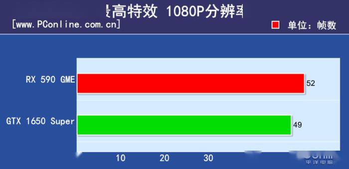在“匡扶汉室”的全面战争:三国中,蓝宝石RX590 GME以2帧的微弱优势领先GTX1650 Super 5.4%的帧数表现。