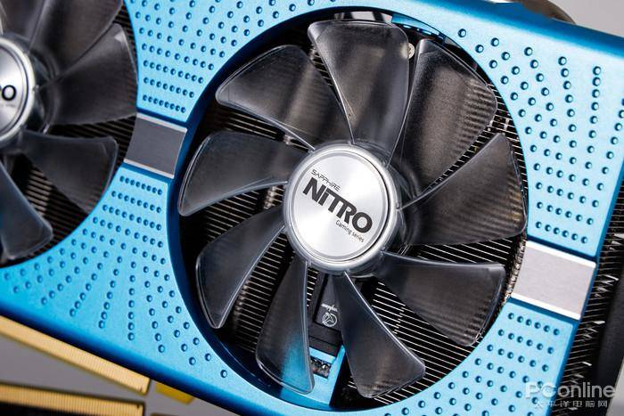 蓝宝石RX590 GME 超白金极光特别版第一眼给人的感觉就是煤气炉·蓝,整体极光蓝色调的外观给人感觉就非常的漂亮,搭配95mm大尺寸可拆卸蓝光LED风扇更让这张显卡拥有高颜值。