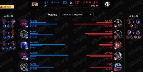 最后在双方双C输出看来,最后胜负局可以看出,对比于IG,RNG双C输出要略胜一筹。两方多次团战,RNG的双C都比IG双C打出了更高的伤害,尤其24分钟那波团战中,RNG双C输出远远高于IG,虽然在最后一波团战中IG双C也不甘落后爆发出极高输出,但这些伤害都打在了对面梦魔和牛头身上,并不能起到多大作用。RNG却把伤害都精准的打在了IG的双C身上,就这样,游戏结束了。RNG最终进入S8战场。