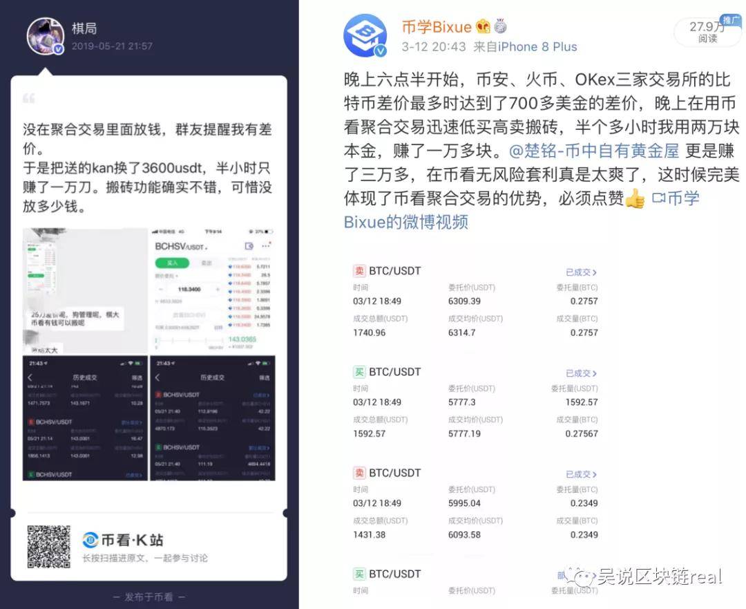 从用户的角度来看,相比于撮合交易所,聚合交易所最大的优势来自于更好的交易深度和更优的成交价格。行情出现重大波动时,各交易所之间同币种会出现一定幅度的价差。聚合深度的优势就会一览无遗,不少嗅觉灵敏的用户会及时抓住市场机会,在币看的交易平台上“一键搬砖”。
