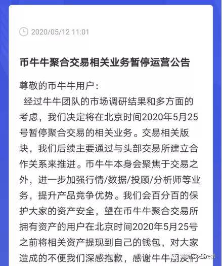然而,就在不久前BTC再次突破10000点之际,币牛牛这家过去一直标榜自己为“币圈同花顺”的交易所倒下了,对外公告暂停运营聚合交易板块。