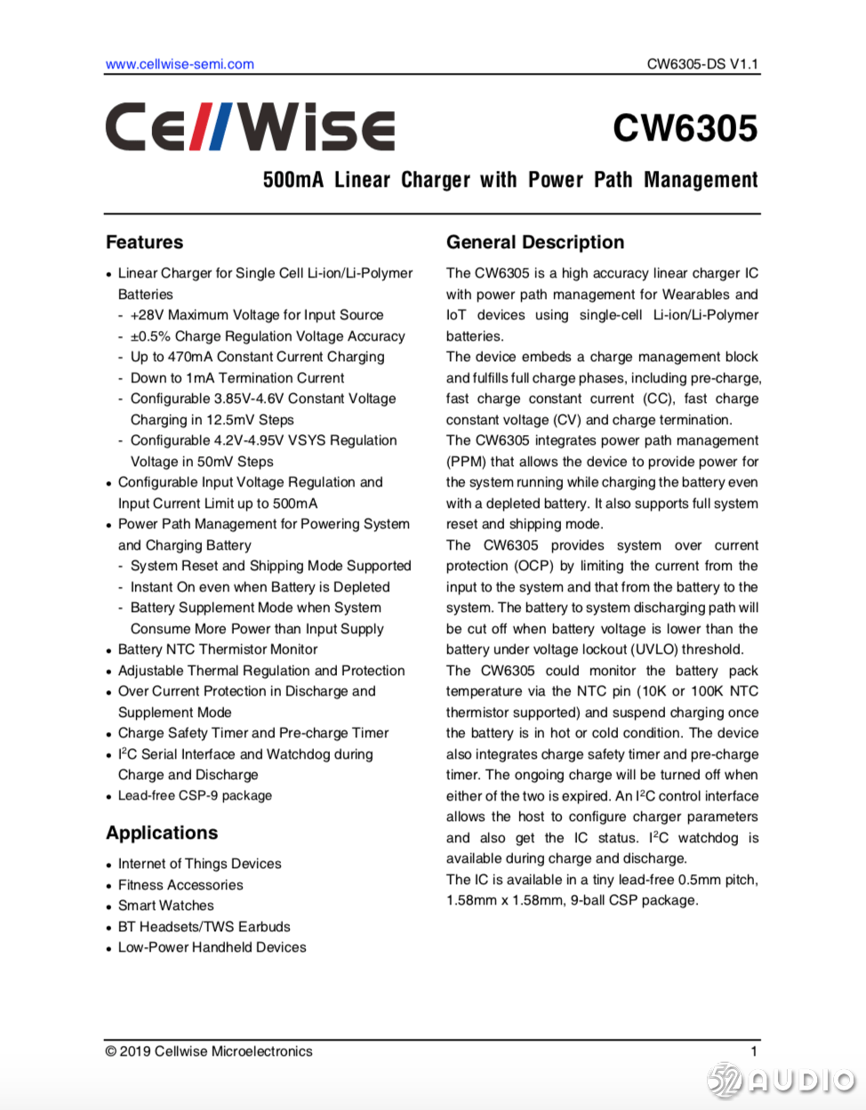 此外,OPPO Enco M31还采用了赛微的CW6305线性充电芯片,我爱音频网近期拆解的多款产品都有它的身影,下面来详细了解一下吧~