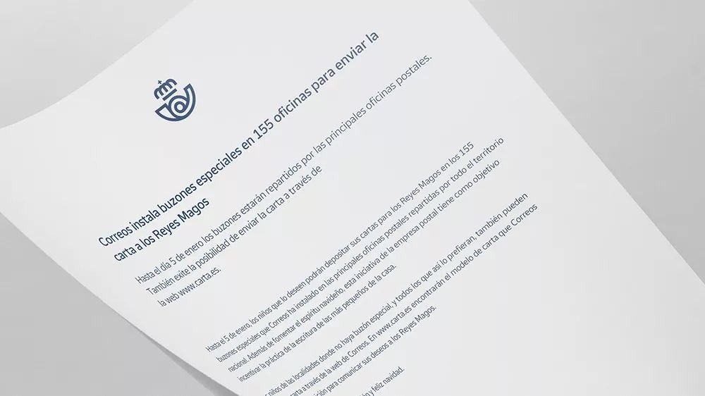 西班牙邮政(Correos)建立于1716年,至今已经有300年历史。拥有数万员工,业务遍及实体、数字通讯、邮递包裹等。由国家拥有,每年帮助提供超过6900万包裹和270万封信件,拥有近15000辆车辆,其中包括近500辆电动汽车。最近,他们推出了由Summa设计的新标识形象。