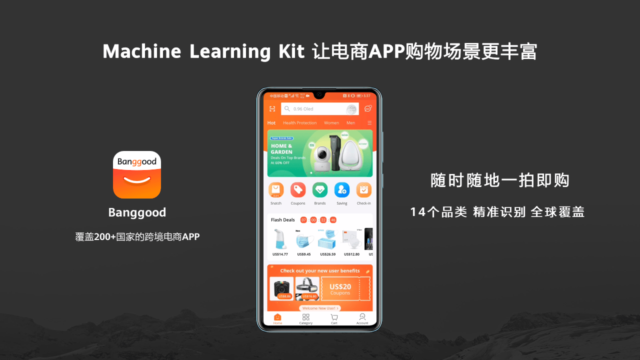 当普通用户在社交媒体看到好友的衣服推荐,希望能够通过图片搜索到同款;或者当用户在线下零售店遇见心仪的箱包,想要了解线上是否有优惠折扣的时候,如果可以通过拍照或传入图片即可快速搜索出同款或相似的商品呈现给消费者,将极大满足用户在购物场景的需求。作为一款全品类在线购物App,Banggood通过接入华为机器学习服务,构建了强大、便捷的图片处理能力,能够实现14种商品品类的精准识别,帮助开发者快速构建拍照购物服务。Banggood通过一拍即购的全新购物体验,拓宽了线上线下相结合的购物场景,为用户提供了更加灵活、便捷的购物体验。