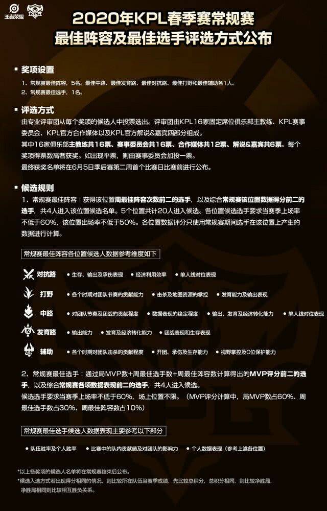 原标题:KPL常规赛:MVP花落谁家?最佳阵容最佳选手评选方式公布!