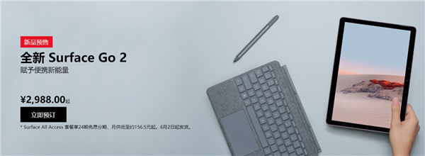 即日起,Surface Go 2在微软官方商城、天猫商城的微软中国官方旗舰店、微软京东自营官方旗舰店、顺电、苏宁以及微软店中店和微软授权店等线上线下渠道开启预售和预定,Wi-Fi版本起售价为2988元,还可选带LTE增强版的Surface Go 2,起售价为5788元。