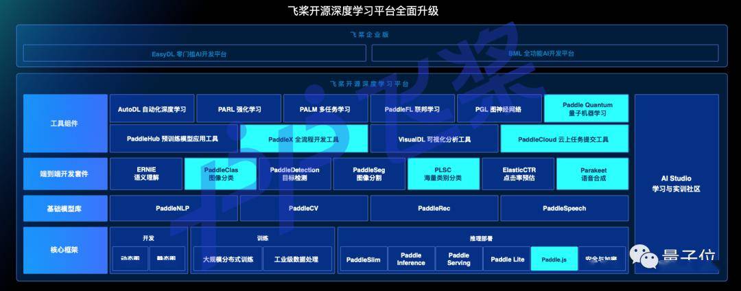 飞桨最新的全景图,包含 飞桨开源深度学习平台和 飞桨企业版两部分。