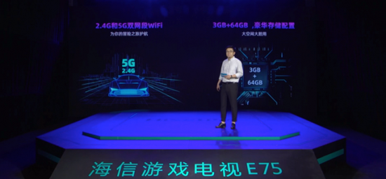 海信游戏电视E75配置3GB运行内存、64GB机身存储,支持看电视、玩游戏、听音乐多任务处理轻松流畅。E75还搭载了2.4G和5G双频WIFI,满足大数据高清影像,及大型游戏数据传输需求。