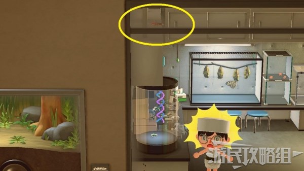 仔细观察实验室上方的话,还可以找到一只逃跑的蜈蚣。