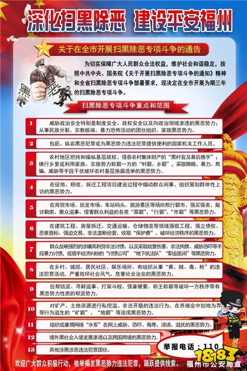 关于在全市开展扫黑除恶专项斗争的通告深化扫黑除恶 建设平安福州