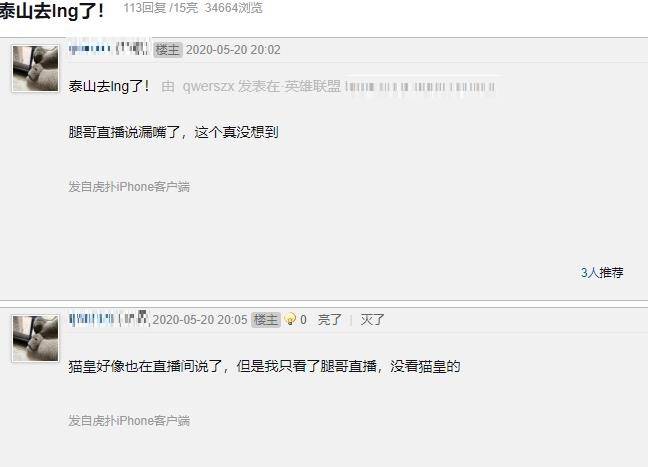消息来自于虎扑论坛,有位JR发帖说自己看957的直播,听到957说漏嘴了,Tarzan去了LNG,而且也有人说另一位LPL解说cat也在直播间里透露了。根据这位JR的透露,957的原话是:我可没说Tarzan要去LNG啊!然后非常奇怪的笑了起来,因为弹幕没人刷LNG,957突然主动提到了Tarzan不去LNG这种话,反而游中此地无银三百两的意思。之后弹幕节奏起飞后,957又表示:我啥都不知道。