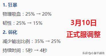①弱化和狂暴被削弱,惩击性价比相对提高。对于边路的战士和坦克英雄来说,除了那些技能有特定需要的英雄(例如孙策依赖晕眩来配合一技能击飞、达摩依赖闪现来切后排),召唤师技能选择的自由度会相对高一些,选择一个性价比更高的召唤师技能就至关重要。在弱化和狂暴这两个边路主流技能被削弱之后,惩击的性价比自然被提升上来了。