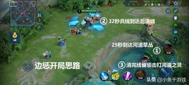 在清完线抢河道之灵时,如果敌方英雄没有来抢的意思,我们能留惩击就留惩击,这样可以在1分钟的时候,去快速收掉中路的河道之灵或者敌方野区的小鸟野怪。