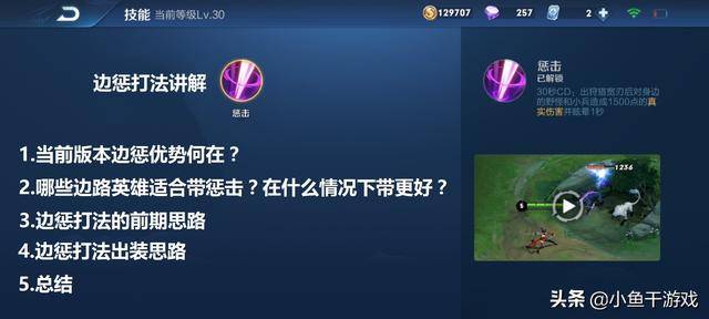 这里小鱼干重点讲一下边路惩击打法的前期思路,为什么不讲中后期呢?因为中后期的打法,其实就和普通的边路打法一样了,都是一样的带线运营、打团搅局等,只不过我们带了惩击,就可以更多地去入侵敌方野区,以及帮助打野能更加保险地拿下龙。