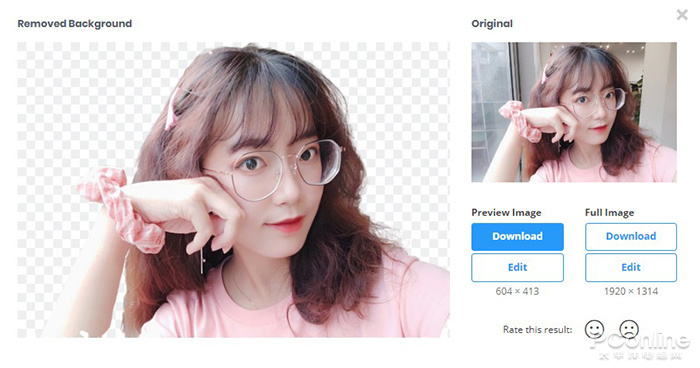 Remove.bg提供两种图片上传方式,一是点击页面中的“上传图片”按钮,上传本地图片。二是按下Ctrl+V直接粘贴在线图片网址。上传后不必进行任何操作,马上就会得到一张已经去好背景的图片。