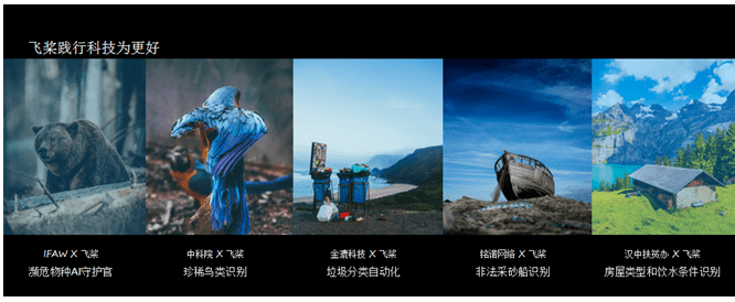 据悉,百度“星辰计划”首期已经释放了5.6亿流量,为超过200个公益项目进行了推广。在用实际行动践行“科技为更好”的使命之上,飞桨也正在深度参与其中。在此次深度学习峰会上,刘倩还分享了基于百度飞桨推出的一些公益项目,并用一支视频以感性的方式传达了飞桨用AI赋能公益事业的坚实脚步。例如,支持IFAW濒危动物的守护,支持中科院珍稀鸟类的识别项目,联合金漉科技实现垃圾分类自动化,联合铭诺网络进行非法采砂船识别以及支持汉中扶贫办落地房屋类型和饮水条件识别项目等。