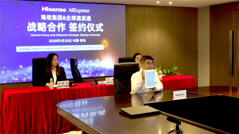 5月20日,海信与速卖通在云端签订战略合作协议,双方携手共同开拓海外线上零售市场。