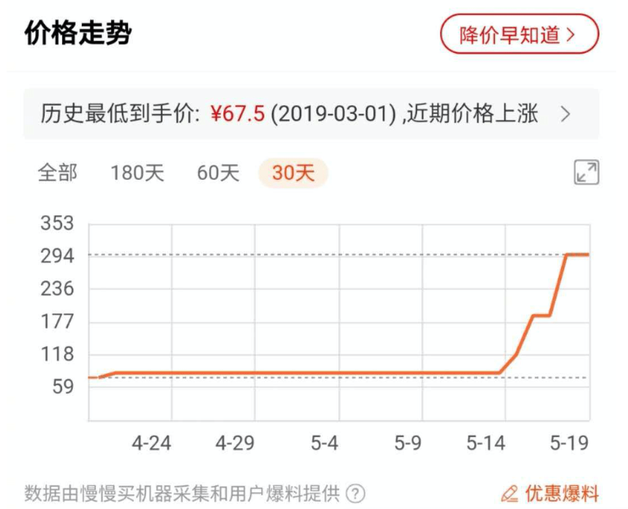 的确是涨价了,投资家网通过查询淘宝、京东等电商平台发现,原本百元以内的头盔,现价多数都在100-300,普通的“哈雷”型半盔,平时售价为85元,5月16日涨到了188元,5月19日已经涨到了298元,可谓是“一天一价”!