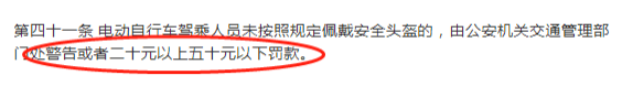 在《江苏省电动自行车管理条例》中,将此前的“鼓励”佩戴安全头盔变成了“强制”,并规定,电动自行车驾乘人员未按照规定佩戴安全头盔的,由公安机关交通管理部门处警告或者二十元以上五十元以下罚款。