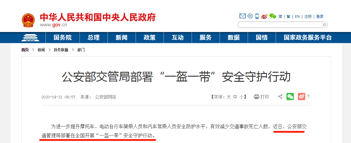 究其为何,原来是4月21日公安部交管局部署开展的“一盔一带”行动,“一带”是指安全带,“一盔”是指安全头盔,并规定从2020年6月1日起,对不按规定佩戴安全头盔、使用安全带的交通违法行为将进行严格查处。