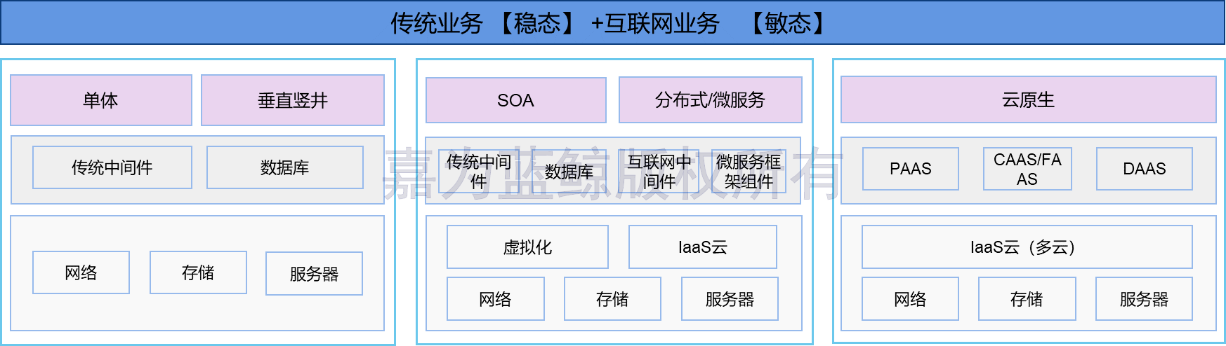 因此,银行保留面向“稳态”的、基于集中式的传统核心,注重安全、稳定,如存款一类账户、借记卡、传统贷款、支付等业务,新建面向“敏态”的、基于分布式互联网核心,支撑海量客户、高并发,适合管理二三类账户、直销银行等业务。