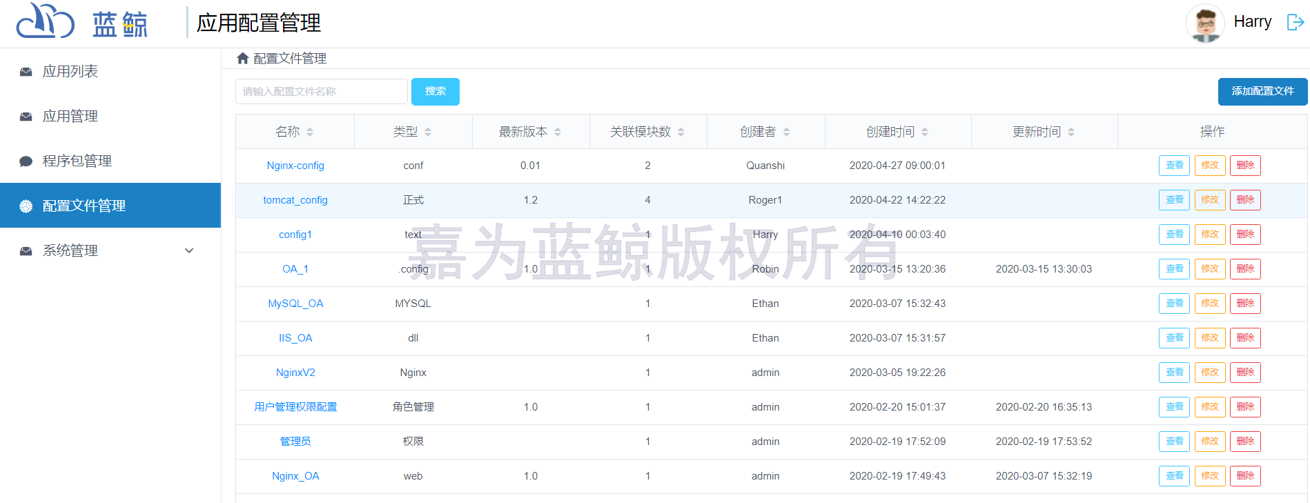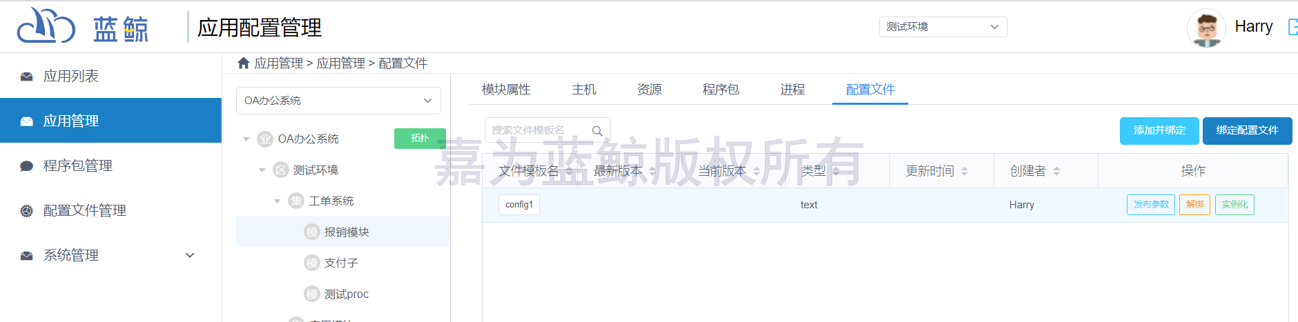 配置文件统一管理、变更和发布也是应用运维的重点工作之一。配置文件也需要与应用模块进行关联:
