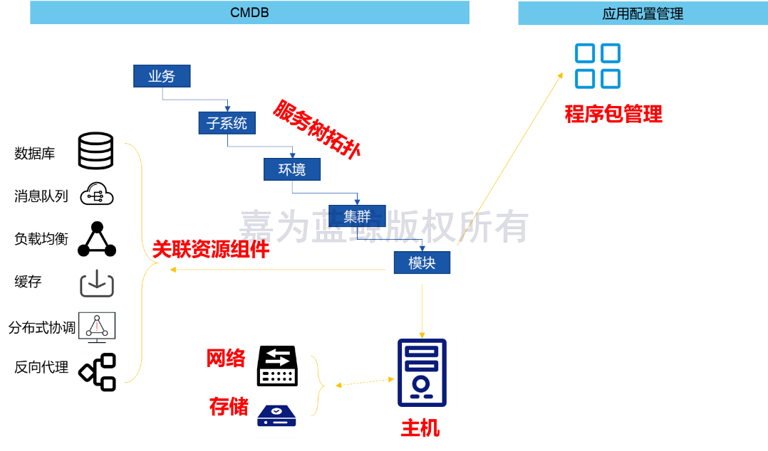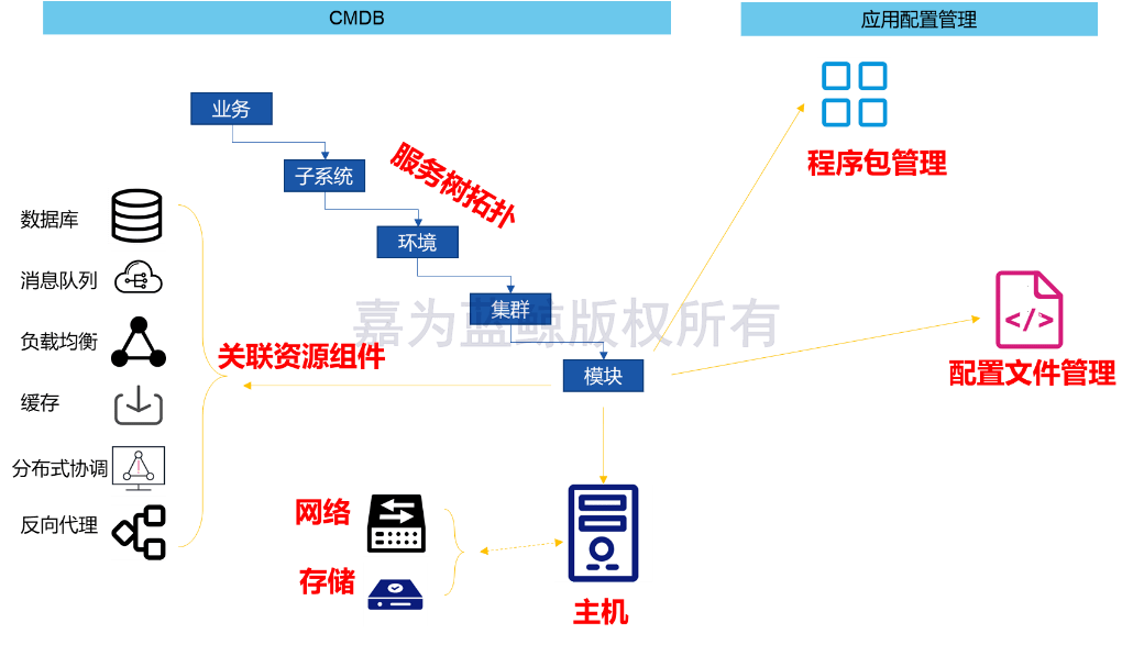 面向应用运维的、以CMDB为基础的应用配置管理是应用运维的基石和前提,它的设计和建设决定了能否同时支持多种架构的应用的配置管理及自动化运维。简单来讲,应用配置管理需要包含以下几个重要功能或重要原则:
