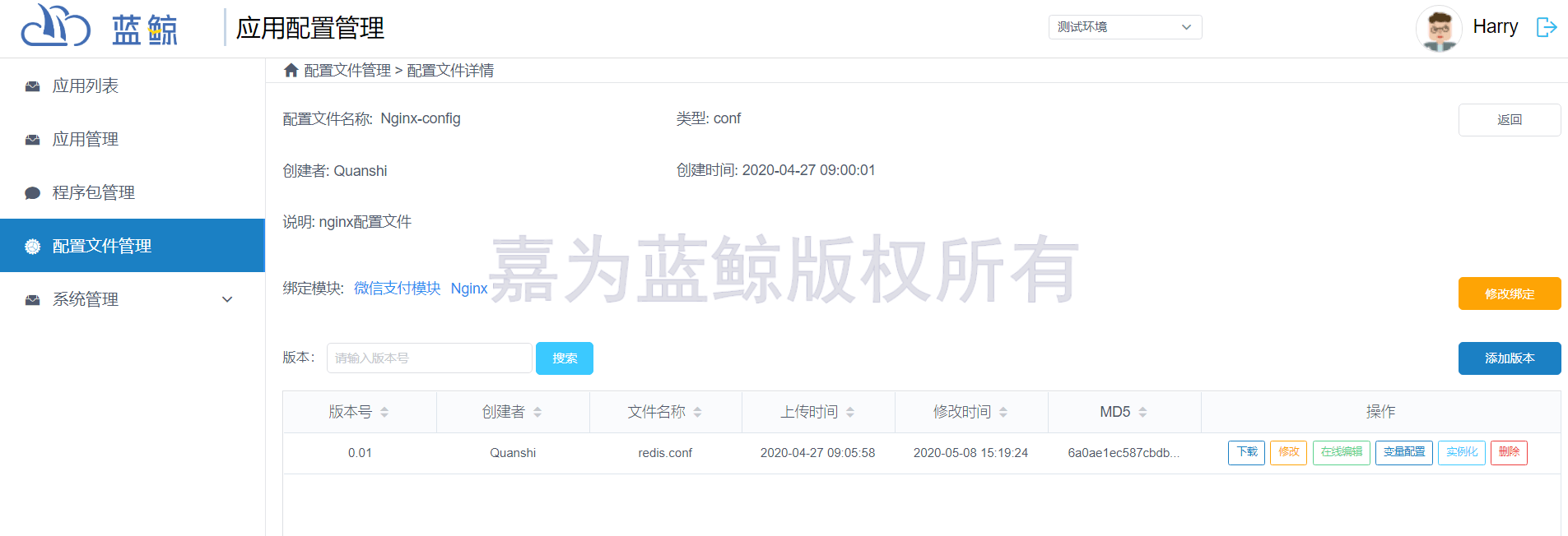 配置文件的版本管理、在线编辑、基于可自定义mako语法的变量管理等功能: