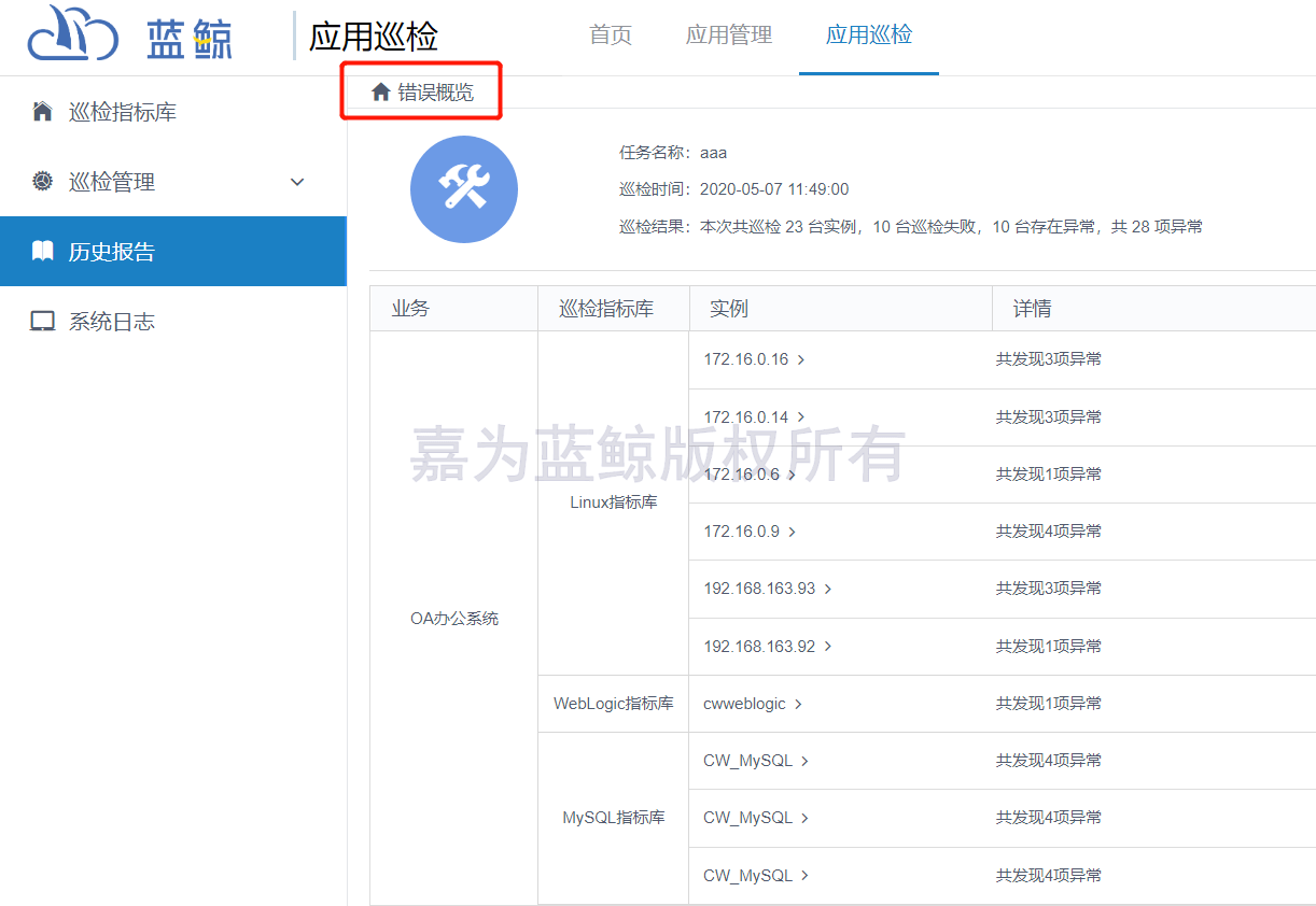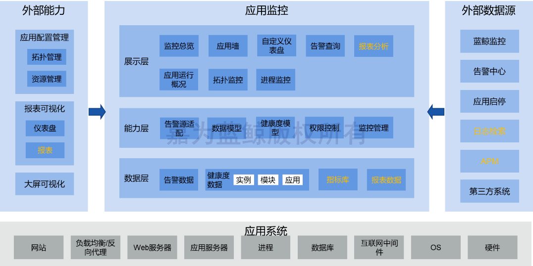应用系统是由一组应用程序和系统资源组成。当用户访问应用系统发生问题时,可能是应用程序运行的问题导致,也可能是相关的资源对象(如数据库)出现问题导致。当一个应用系统越来越庞大和复杂时,确保系统中各应用程序和系统资源对象处于健康状态是应用系统正常运行的重要前提。