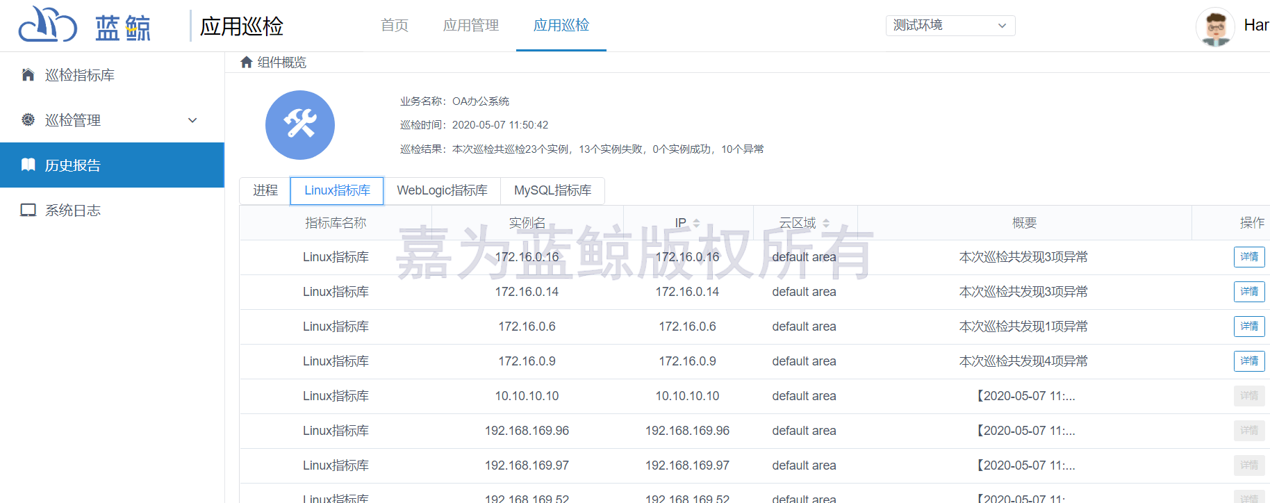 应用巡检是从应用内部进行巡检,但还无法直接反馈用户的真实使用情况。针对重要的业务系统,从特定办公地点模拟用户发起对该业务系统的访问并且验证该系统业务功能,我们称之为业务巡检。