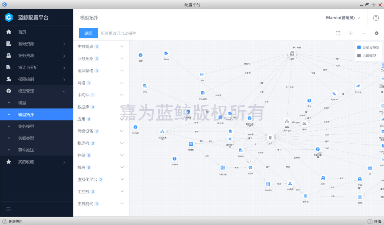 以上的各种资源对象模型、拓扑节点模型、包/配置文件/进程模型等均可自定义参数模型,以便于适应不同企业的应用配置管理需求。